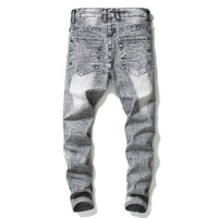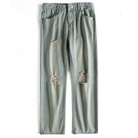 กางเกงยีนส์สำหรับผู้ชายกางเกงยีนส์แบบสตรีทแวร์กางเกงยีนส์ซักขาดๆมีรอยขาดโลโก้ตามสั่ง