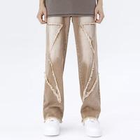 กางเกงยีนส์ขาบานสไตล์วินเทจสำหรับผู้ชายกางเกงยีนส์ขาบานปักลายดาวแบบหลวมตามสั่ง